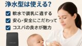 | 1. 利用目的 | 飲料用・調理用・赤ちゃんのミルクなど、用途に応じて機種や水の種類を検討する |